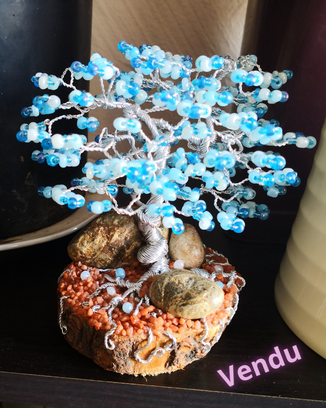 Mes Arbres décoratifs Artisanaux sont de véritables créations artistiques, alliant esthétisme et écologie. Réalisés avec du fil aluminium doré, argenté, rose, rouge, bleu, violet, noir ou marron, ainsi que des perles acryliques, en verre ou en pierres fines, chaque arbre est une pièce unique qui apportera une touche de charme à votre intérieur.