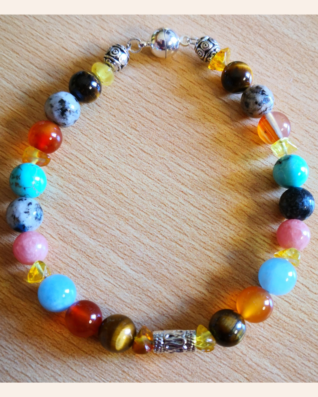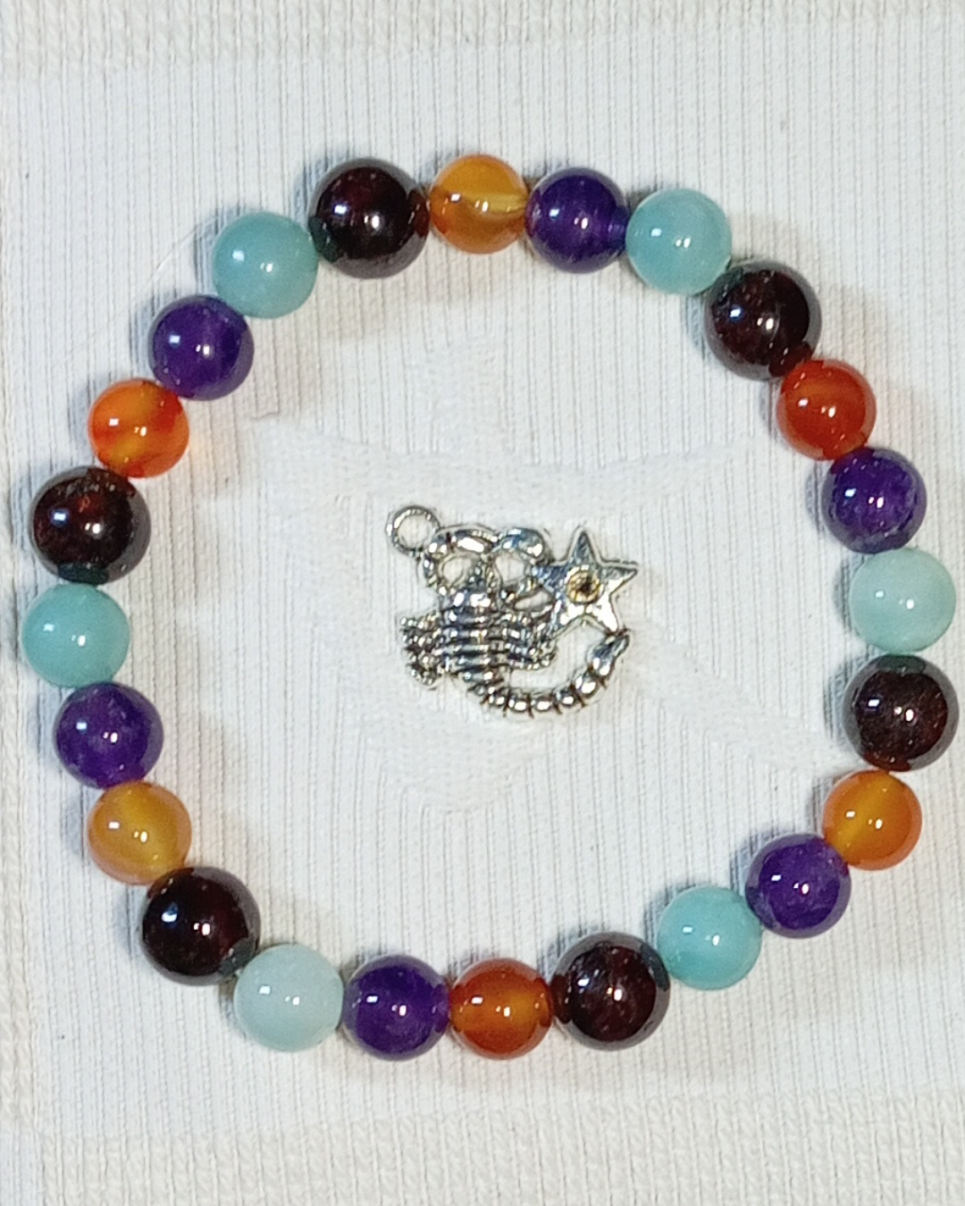 Bracelet en Améthyste, Cornaline, Amazonite et Grenat