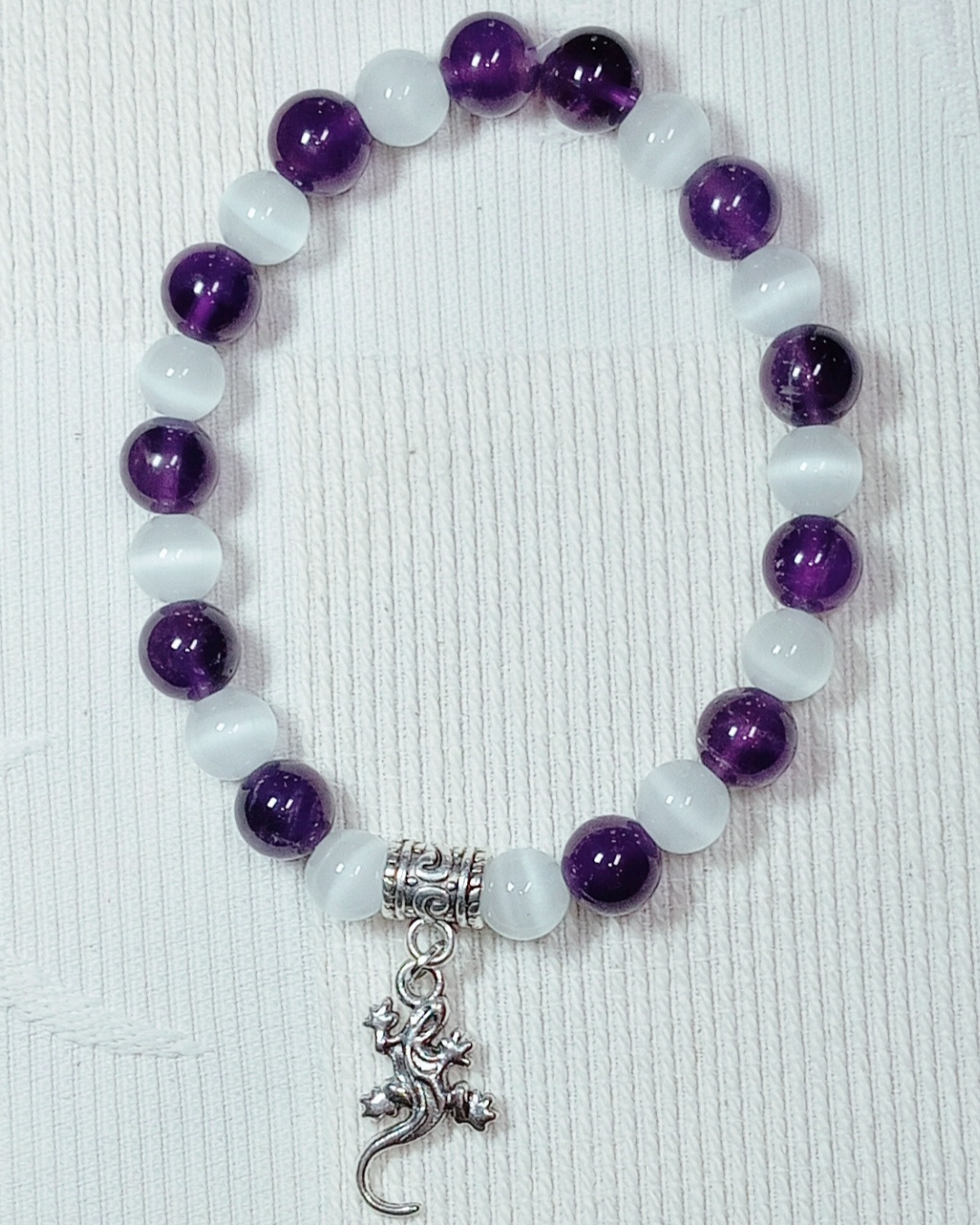 Réf. BRCHV2 – Bracelet composé de vos 8 pierres fines agrémenté de Perles en Pierre de lave (blanches ou noires) & Breloque, Entretoise(s) ou Connecteur (1 option au choix) : 45€