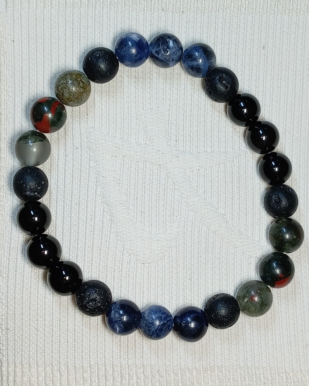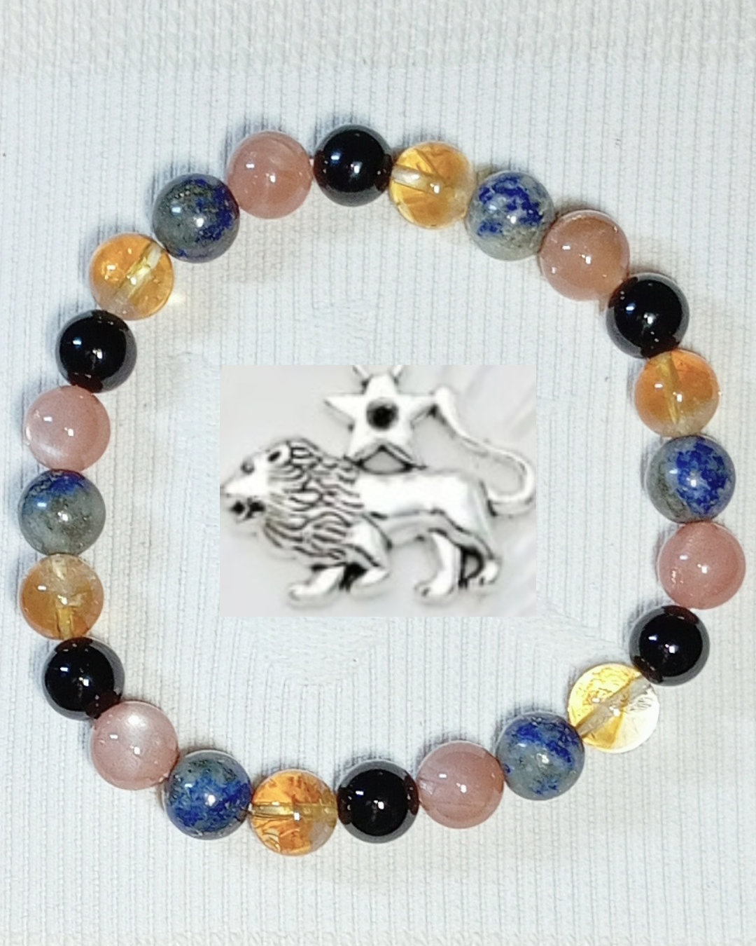 Onyx, Pierre de Soleil, lapis-lazuli et Citrine Cat. A (8mm)