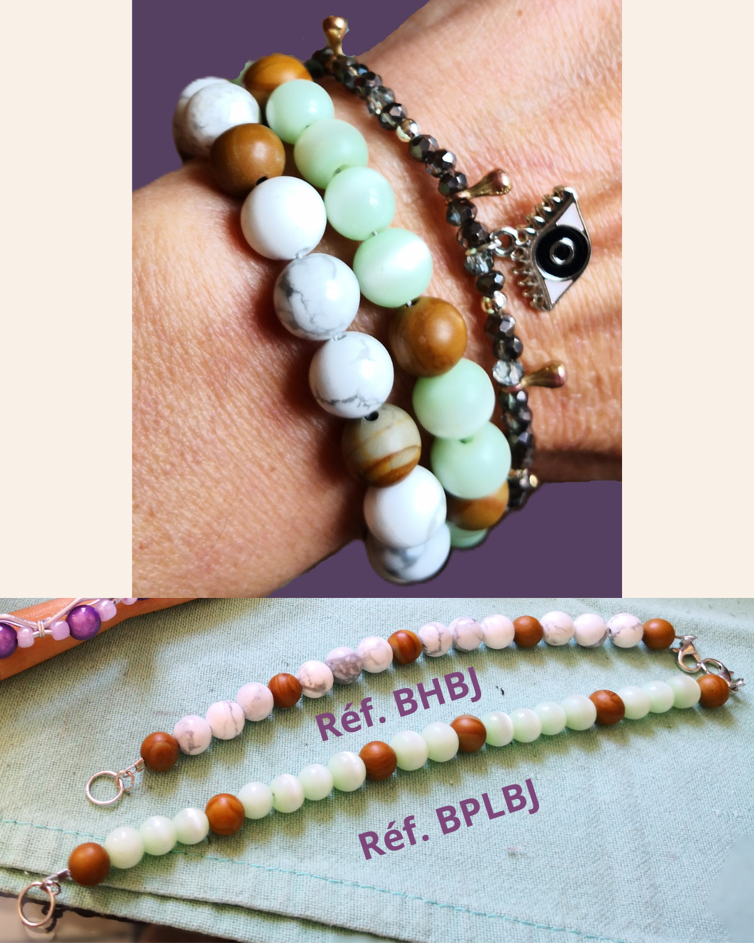 – Bracelet sur fil élastique en nylon avec 2 options (Entretoise et Breloque) : 30€